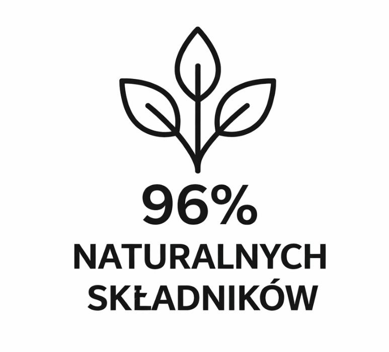 Zawiera 96% składników pochodzenia naturalnego. Produkt wegański. Nie zawiera laktozy, glutenu, barwników, GMO.