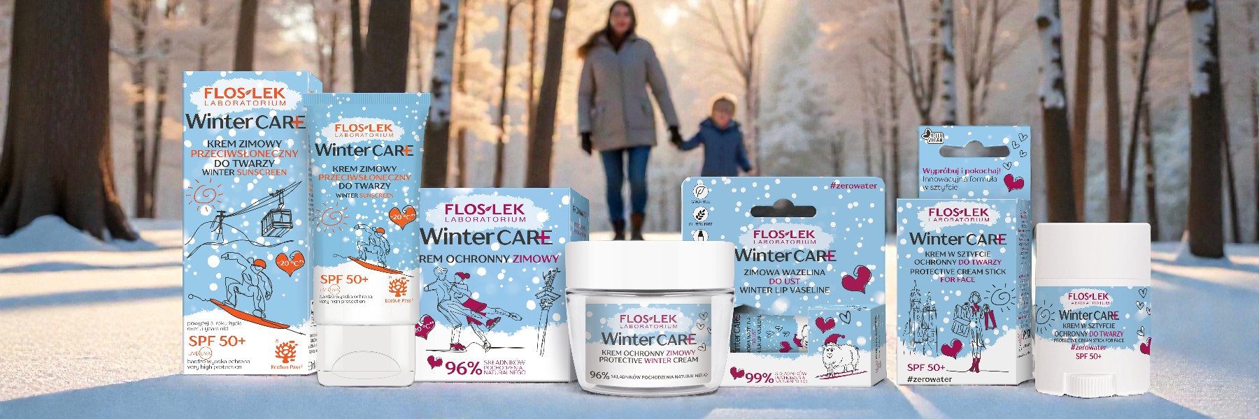 Linia Winter Care FLOSLEK zapewnia kompleksową ochronę i pielęgnację skóry od niemowląt, przez dzieci, po dorosłych — nawet w najbardziej wymagających zimowych warunkach.